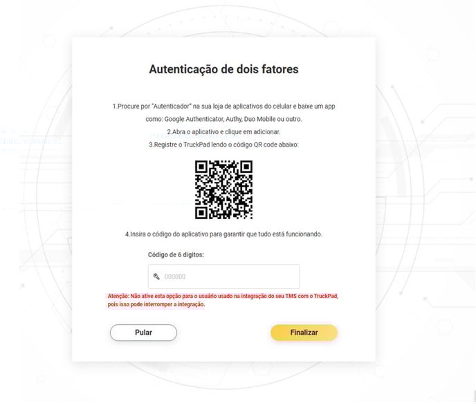 Nesse artigo é abordado o processo de autenticação de 2 fatores na plataforma TruckPad.