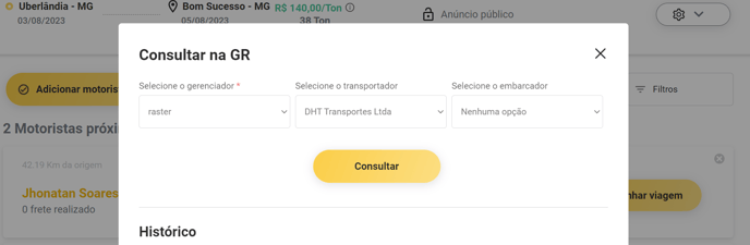 É importante reforçar que só é possível consultar um motorista que esteja com o cadastro completo e com o selo de verificado. Caso o motorista que deseja consultar não esteja com o cadastro completo, veja aqui como torná-lo um motorista verificado.