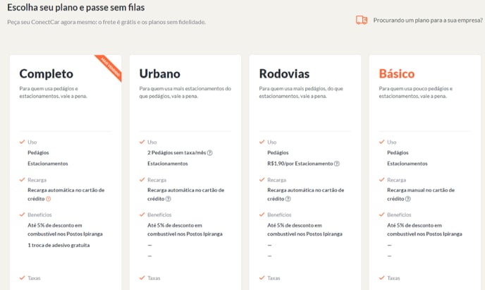 Se você é cliente TruckPad, você pode adquirir tags ConectCar sem mensalidade e sem cartão de crédito. Para isso, entre em contato com o time TruckPad!